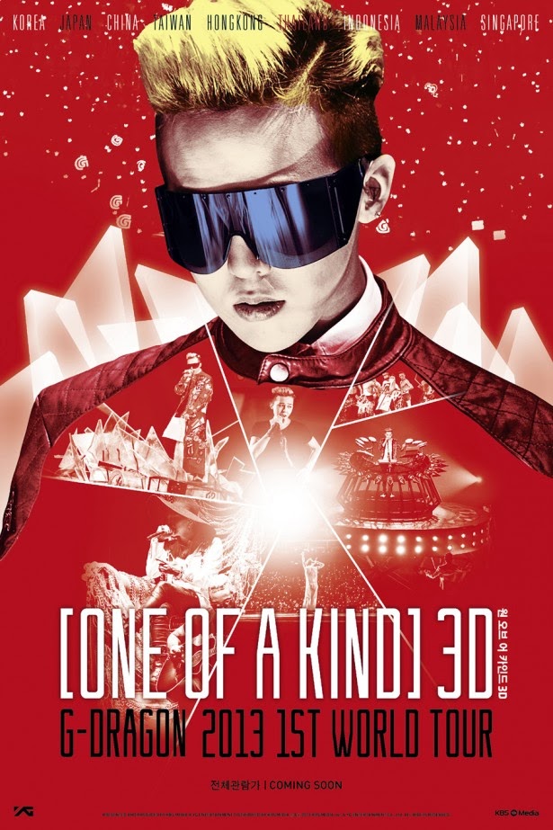 The movie version of G-Dragon’s successful world tour titled ‘[One Of A Kind] 3D G-DRAGON 2013 1ST WORLD TOUR’ is set to open in the Korean theaters on October 31. The movie was reportedly filmed using 24 cameras, including several 3-D cameras, to capture the concert experience as fully as possible.