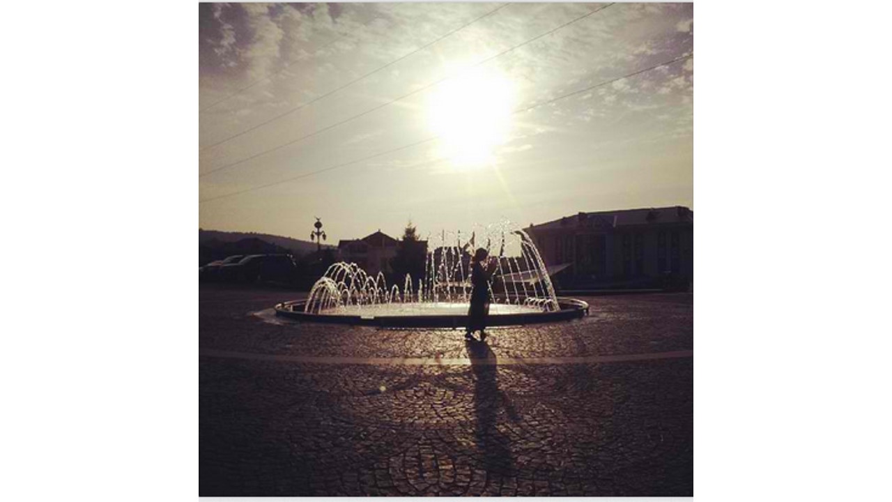 On the photo, there's no the usual selca where we can only see the face of the person and the scene is out of placed. G.NA showcased a scenic one. She is all alone in a quiet resident area, seemingly walking. The photo is focused on the fountain and the sun which played as her background props.