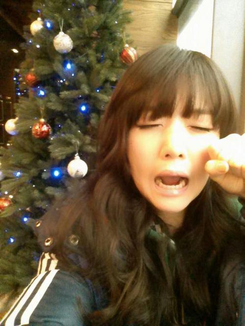 In the attached photo, Minah is looking cute as ever as she makes a pouting and crying face. She seems to be expressing how the singles feel during holiday season.