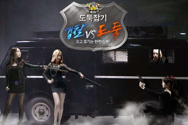 Girl's Day are the new models for 'Sudden Attack'. Minah and Sojin are the pretty policewomen (Blue Team) who attack the pretty thieves Hyeri and Yura (Red Team).