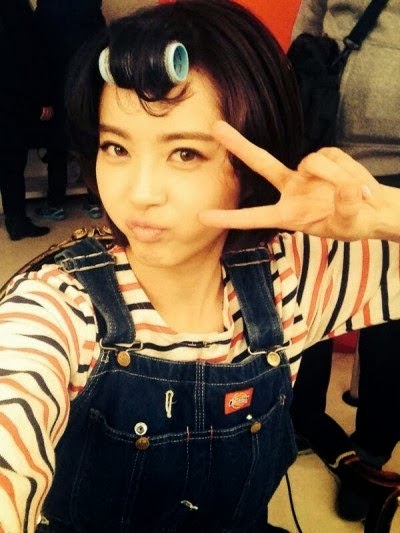 She was pouting cutely while posing with a V sign, the photo seemed to be taken taken while she was getting her hair done for her character Najung in "Reply 1994".