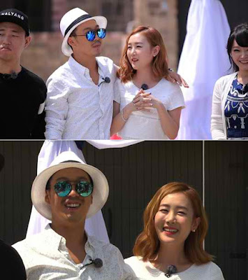 HaHa and his wife singer Byul will be partners in the couple race. When Byul was introduced as a guest and shouted "Yeobu [Honey]!", HaHa became shy and looked awkward immediately.