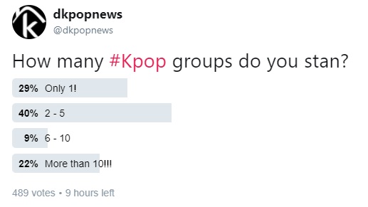 As a Kpop fan, I can easily follow the latest updates of more than 10 groups through social medias and Youtube, we have set up a poll yesterday to ask fans regarding the number of groups they stan.