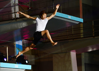 Among the athletic idols, the idols who made everybody surprised is Infinite's L. Without much preparation, L was able to demonstrate a difficult diving position that reveals his skills.