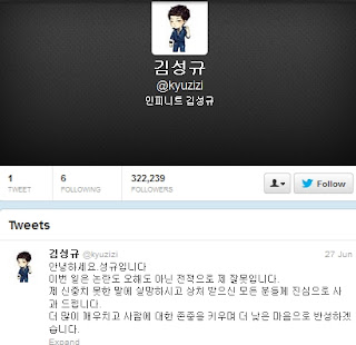 To prove that he is really reflecting, on June 28, Sunggyu deleted all his tweets except his apology. Fans who have been following him commented, "It's so painful to see him deleting his tweets.","He's very sincere.","Be strong oppa!" and so on.