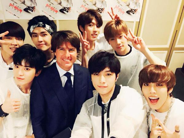 INFINITE are also starstrucked and don't miss the opportunity to have a group photo taken with Hollywood actor and heartthrob Tom Cruise.