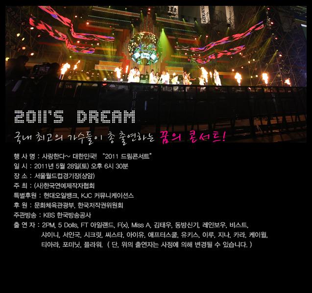 Take a look at the list of artists who will perform on 2011 Dream Concert,info credits to DKPOPNEWSM.COM!