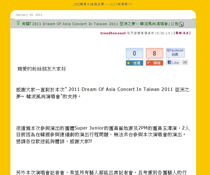 Thank you for your continuous support towards “2011 Dream of Asia Concert in Taiwan”.