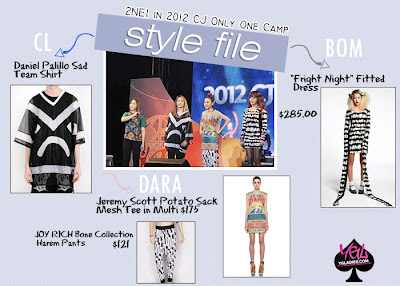 A little bold, a little sexy, a little fun, and all 2NE1. At last month’s 2012 CJ Only One Camp, 2NE1 performed in front of a energetic crowd in fashions by some new and familiar designers, all at surprisingly affordable prices.