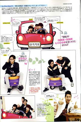 At the filming scene that was held at 1:00PM on March 13th (aired on March 25th), the voices of praise such as “You guys are great after all, you’re the best!” could be heard. That is because of the unlimited love the group received by the staff while filming with their expressions and gestures that attract your interest, the suggestions to many ideas for the use of props. They are very concentrated while filming and finish everything perfectly, but also give us the present of their playful and happy atmosphere during their breaks. We shall show you B1A4’s – who overflows with infinite charms – Behind Story! # Conversation between CNU and Jinyoung – “Hey, I told you I was going to drive!” the two of them who were bickering over the toy car that looks exactly like (?) a Lamborghini. Who is the one who snatched the wheel in the end? Apparently CNU took the wheel in the end while shouting “(Strongly) I’m going to ride that!”
