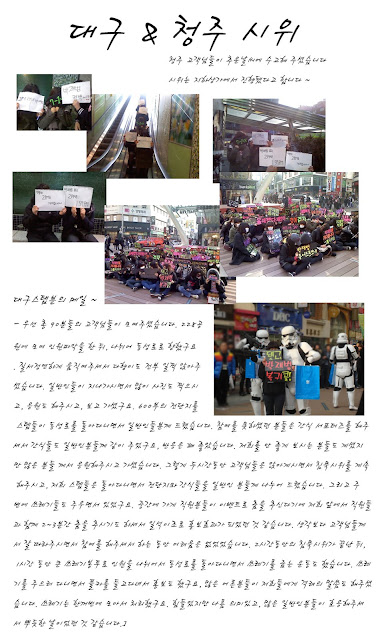 A lot of passerbys took pictures, encouraged us, and just looked. Our staff walked all over Dongsungro and handed out 600 fliers. Those that couldn't join us later came with snacks and passed them out to those watching us. The response was great. There might have been people that didn't like what we were doing but there were also a lot of people that encouraged us.