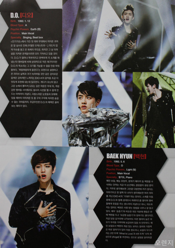 He is the one who unintentionally became a hot issue after his cute mistake (superior orchestra) during their first debut stage on . However if you were in the audience during the rehearsal, you can’t possible forget how D.O perfectly introduced their song! When you compare him to the other members, D.O’s physique is quite small but the powerfulness of his voice makes up for it. The sweet color of his voice that makes your ears melt and his live skills help him to express EXO-K’s music in a cooler way. Besides, thanks to his particularly clear and lovely eyes, D.O carries a charm that keeps you from detaching your eyes from him even if he is surrounded by the others members with strong personalities. From his lovable eyesmile to the cuteness he has had ever since he was in his mom’s womb, trying to pick one of the infinite D.O’s charms is entertaining.