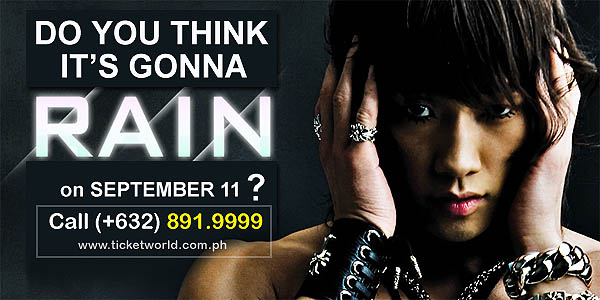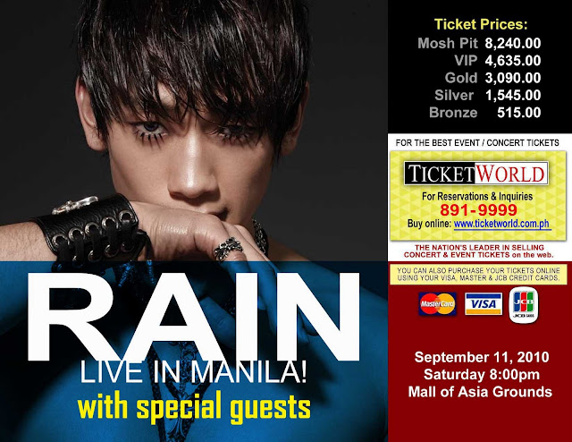 Rain Live in Manila!!! on September 11 2010, with special guests. A very lucky fans K-Pop Lovers in the Philippines, they will see Justin of Full House performing LIVE.