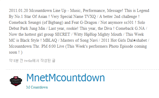 [INFO] MBLAQ as MC's for M Countdown! InfodajeongleeJan 19, 2011 Share 0 comments Looks like MBLAQ is going to be the MC for 20th January 2010 Mnet Mcountdown. Are you excited?SOURCE: MCD's Twitter Tags: Info, Mblaq, Mcountdown Share Previous articleNext article Leave a comment Name Email Content Post comment