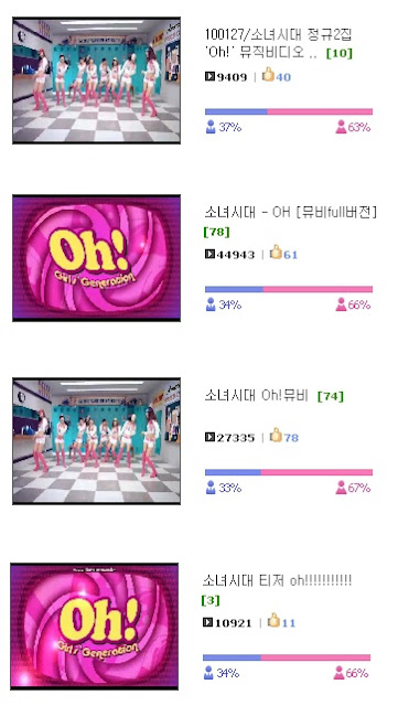 This charts is obtained based on the viewers of SNSD's "OH!" MV on Naver,the results is really surprising as females paid more attention on SNSD's MV.I thought SNSD has a lot of male fans but the statistics seems to have proven me wrong!