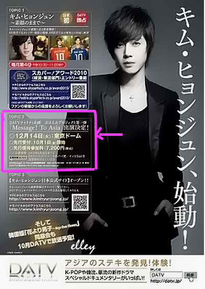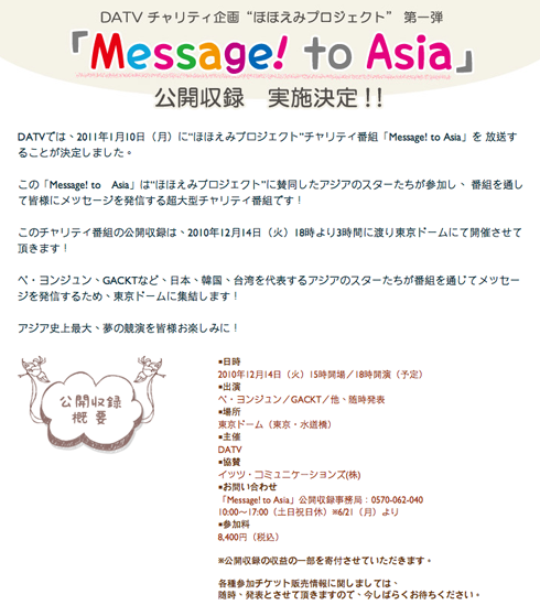 Kim Hyun Joong appearance on "Message to Asia" DATV first time charity plan "HOHOEMI (Smile) Project" had been designed.