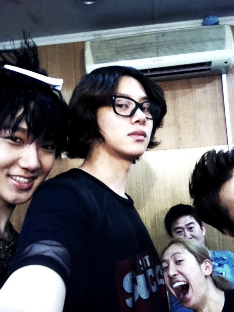 We can see Heechul with his new hairstyle and Yesung beside him and even Donghae's forehead.