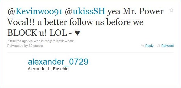 [Info] u-Kiss Soohyun Joins twitter soohyunadela1991May 26, 2010 Share 0 comments U-Kiss Power Vocal, Soohyun finally join twitter.That means, Kiseop is the only one who don't have twitter account yetThanks to Alexander for giving the shoutout ^^Follow Soohyun's twitterFollow DKP twitterFollow me on twitter Tags: Soohyun, Twitter, U-kiss Share Previous articleNext article Leave a comment Name Email Content Post comment