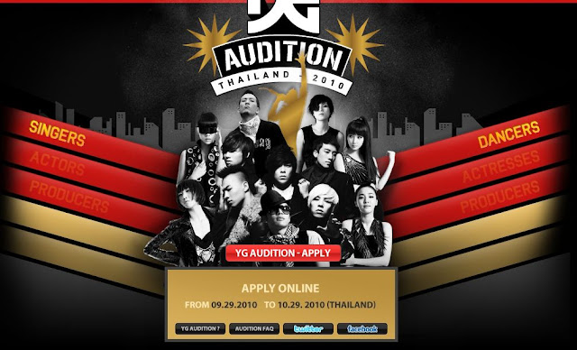To all Thai, do you want to be a part of YG Entertainment? You can apply on their website now (http://www.yg-audition.com/). The audition is from September 29th to October 29th. There's still a few weeks left till the last day of submission. Grab the opportunity and be the new YG artist.