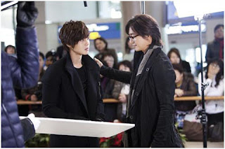 Kim filmed the scene in which he met Bae Young Joon, who plays the chairman of the board of Kirin Art School, the best star training school, at the Incheon international airport on December 7. It was the first time that Kim Hyun Joong and Bae Yong Joon appeared in a scene together after Kim had transferred to Bae’s agency, Keyeast. The production company of “Dream High” said, “Bae Yong Joon monitored Kim’s acting and carefully provided advice about his acting. We had actually planned to film the scene without advance notice as we had worried that too many people might gather at the airport, but many fans were waiting at the airport from the early morning anyway and the entrance of the airport was almost blocked.”