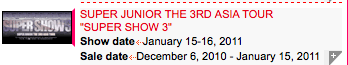 The show date is still the same as we reported before, but the sale date has changed to Dec 6, 2010 until January 15, 2010.