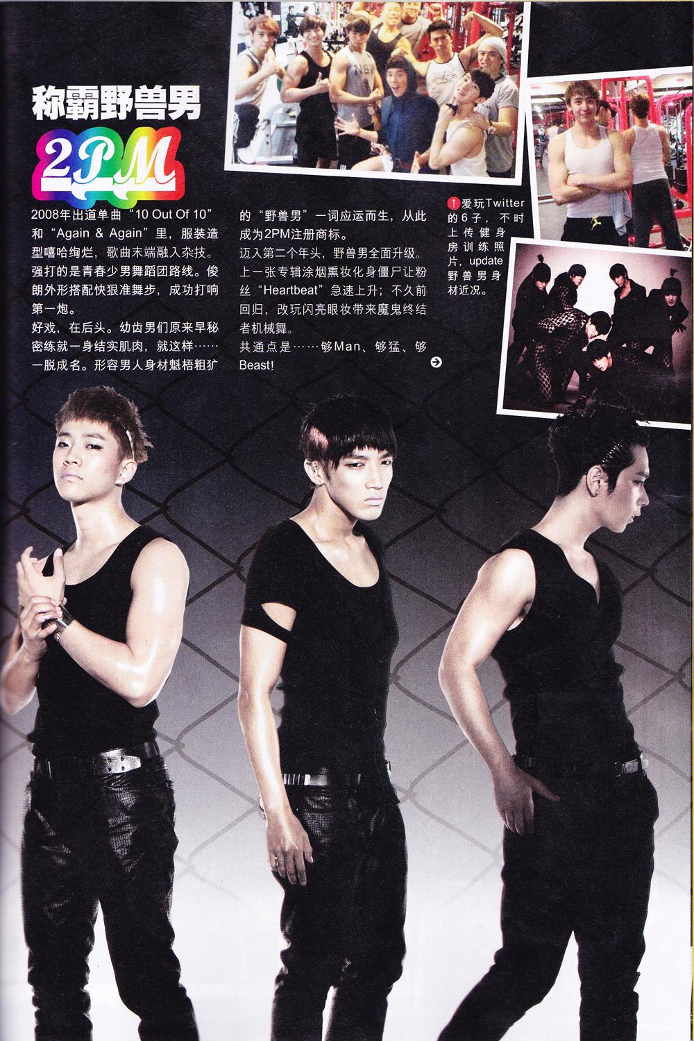 The phrase "beastly idol", which is used to describe men with a well built physique became popularized has soon became a distinctive trademark of 2PM.