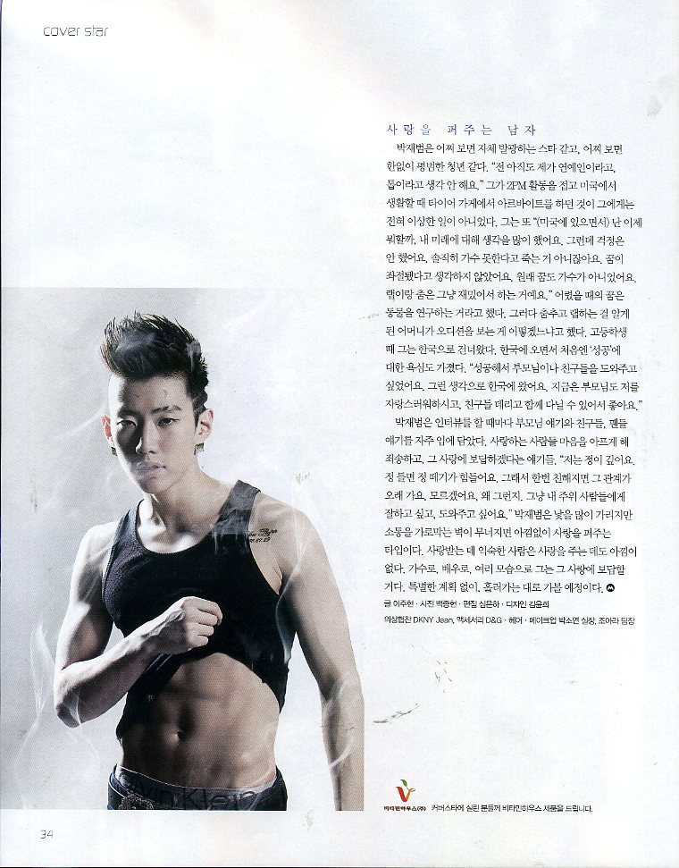 When you look at Park Jaebum in one way, he's a radiating star, but when you look at him from another way, he looks like any other average guy. "I still don't think of myself as a celebrity, as someone at the top." The fact of him working at a tyre shop for a part time job after stopping his 2PM promotions and returning back to his American life was not weird for him at all. He also said "(When I was in America) I thought, what should I do now, I thought a lot about my future. But I didn't worry, to be honest it's not like you'll die if you can't be a singer. I didn't think of it as my dreams falling into pieces. My dream wasn't to be a singer to start with. Rapping and dancing was something I did because it was fun." He said his childhood dream was to do research on animals. His mother found out about his rapping and dancing and suggested him to go for an audition. He came to Korea when he was in high school. When he came to Korea, he first felt a sense of selfishness for 'success'. "I wanted to succeed and help out my parents and friends. That's how I came to Korea. I like it now that that my parents can be proud of me and I can hang out with my friends." During the interview he talked a lot about his parents, friends and fans. He was sorry for hurting the people he loves, and said he will pay back that love. "I have deep feelings, when I like something, it's hard for me to detach away from it. So when I get close to someone, my relationship with them goes long, I don't know why I'm like that. I just want to be good for the people around me, and I want to help them." Park Jaebum is the type where he is shy with strangers but once that brick wall falls down, he will unsparingly spread out his love. He receives love, but does not spare the love he returns to the people familiar to him. As a singer, actor, and his other images, he will return back all of that love. Without any particular plans, he intends to just go with the flow.