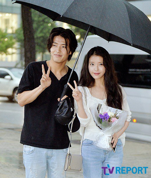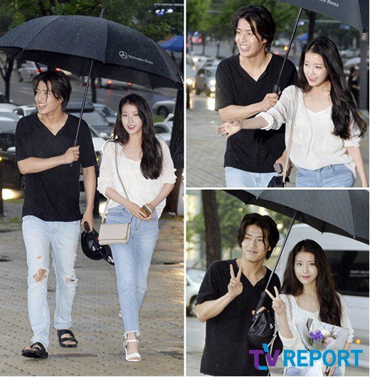 The two artists attended the wrap up party for their upcoming drama "Moon Lovers: Scarlet Heart Ryeo". The two are spotted sharing one umbrella while walking under the rain. Kang Haneul is looking charismatic in his casual attire and very gentleman as he holds the umbrella for them. On the other hand, IU, is also lovely in her simple white top and denim pants while flashing smiles to the camera.