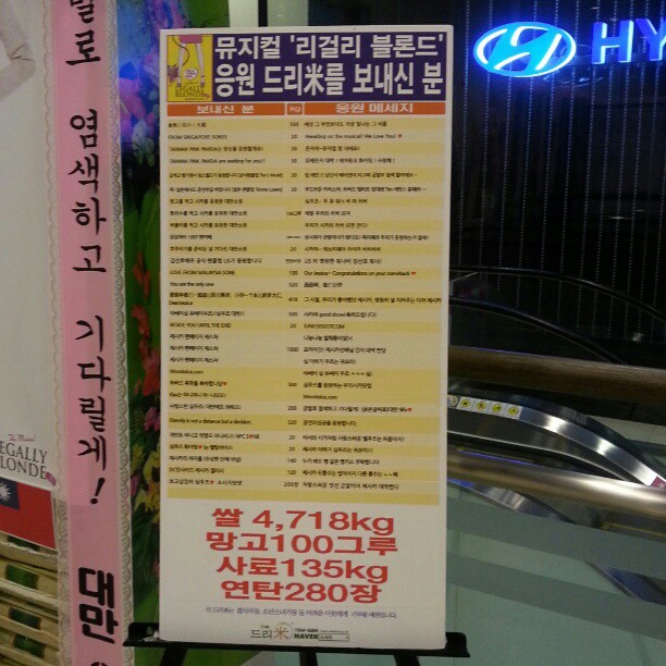 Girls’ Generation also sent in a wreath for Jessica. From left to right, the wreath reads, “Girls who can’t live without you Girls’ Generation. Born to be real Elle Woods ((((Jessica))))”. The message is a play on the lyrics “I can’t live without you my lovely J” from “My J”, a song from “The Boys” album. Tiffany was also able to attend the musical to show her support.