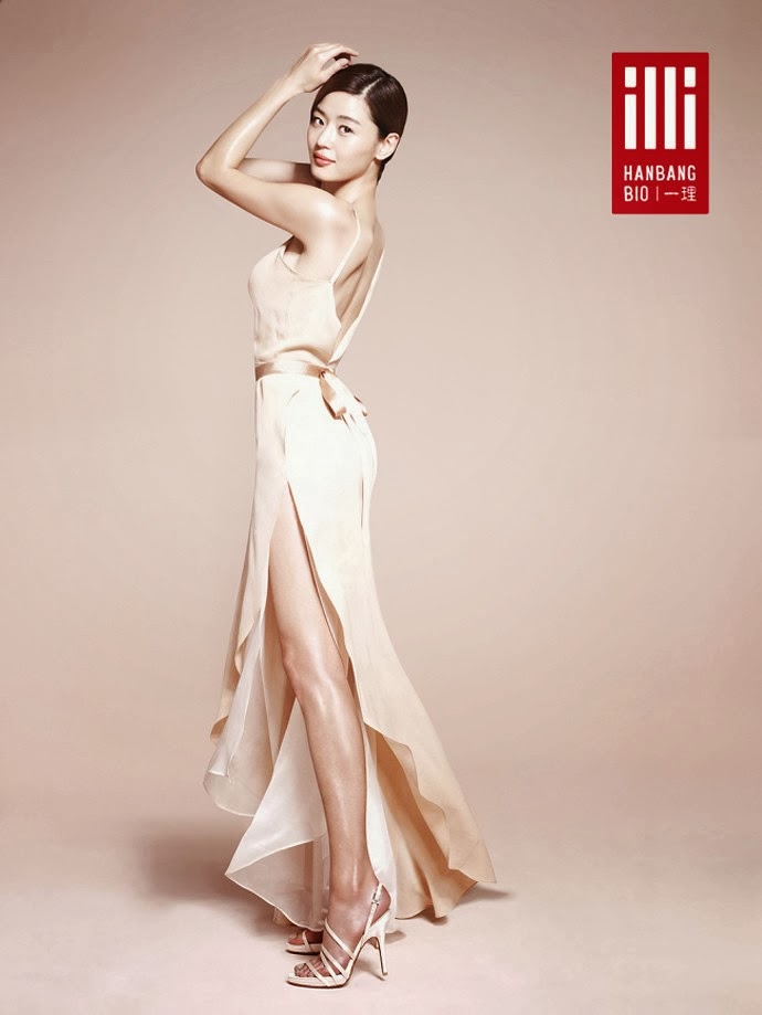 As expected from her status as the "National Goddess", even just by wearing in a simple nude color dress Jun Ji Hyun's still able to stand out with her exceptional and unchanging beauty. Her smooth and shiny skin along with slender body have captured the hearts of many people.