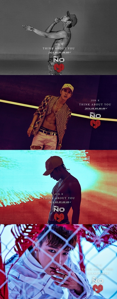 Jun.K sets aside his gentleman image for the meantime and bares his toned body in the teaser images of his upcoming album "JUN. K <Mr. NO♡>" with title track 'Think About You'.