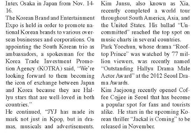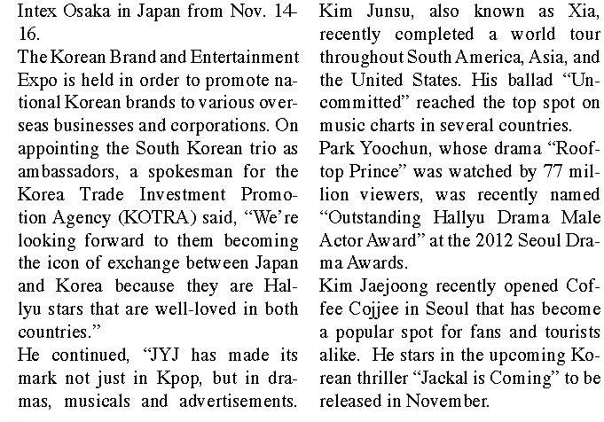 JYJ becoming ambassadors for KBEE ft. in California Crusader Newspaper in Los Angeles, CA JYJangelclowie18Oct 29, 2012 Share 0 comments Credit : calcrusnews.com (Page 7) Tags: Jyj, News Share Previous articleNext article Leave a comment Name Email Content Post comment