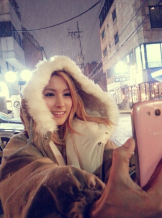 On December 3, Gyuri tweeted a photo of herself with Jiyoung and wrote, “I saw the first snow of the season with Jiyoung~ We were in short dress and ran out in a hurry with just a coat, so you just can’t see what we’re wearing on the bottom… We’re not perverts. Anyways, this is so much fun.”