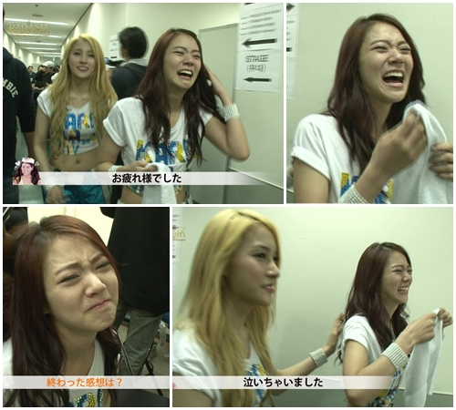 Some photos of Seungyeon from their 2013 Tokyo Dome concert video were recently uploaded on an online community message board. Seungyeon was seen crying when the concert ended, she approached the staff and said "Good job" and her tears started to fall. Leader Gyuri looked after Seungyeon as she was crying continuously like a kid, didn't even notice the camera.
