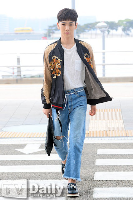 Key appears as stylish as ever at Incheon airport for his departure to Paris where he has Grazia pictorial. Key's outfits looks rather normal until you notice his belt which is happened to be a shoe lace.