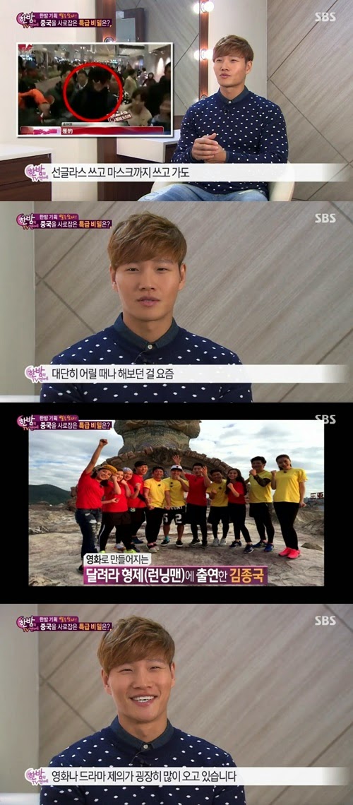 During the broadcast of the show on December 17th, Kim Jong Kook talked about how he has received much popularity thanks to 'Running Man',"Even when I have my sunglasses and mask on, the fans will still recognize me.","Even at the airport, the amount of fans waiting there are like at a fansign".