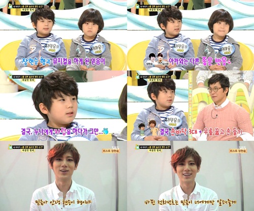 On April 27th episode f SBS 'Star Junior Show BungOhBbang', actor Lee Jung Yong revealed a story, "My son Mid Eum and I are so mischievous but I was shocked when he gave out B2ST Jang Hyunseung's personal number to a noona in the neighborhood. I don't know what to do and I scolded him alot."