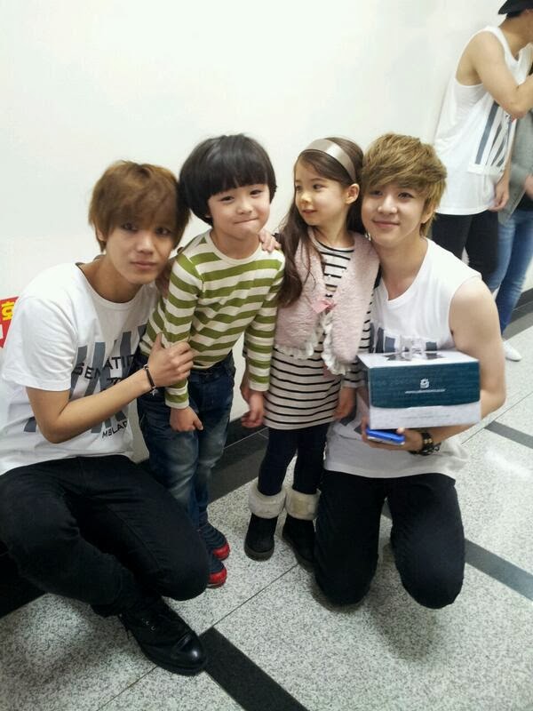The cute children are excitedly waiting for their daddies to perform and cheered for them. They even take adorable photos backstage. Leo shared the photos on his twitter account and wrote, "MBLAQ dads and kids". The three cute kids pose with their dads Seungho, Lee Joon, and G.O.