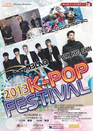 According to the Korean Foundation For International Cultural Exchange (KOFICE) on January 14th, artists like Park Hyo Shin, MBLAQ, Big Star, and D-Unit will be performing on for a K-pop festival on February 9th at the Sapporo Nitori Cultural Hall, as a part of the 64th Sapporo Snow Festival.