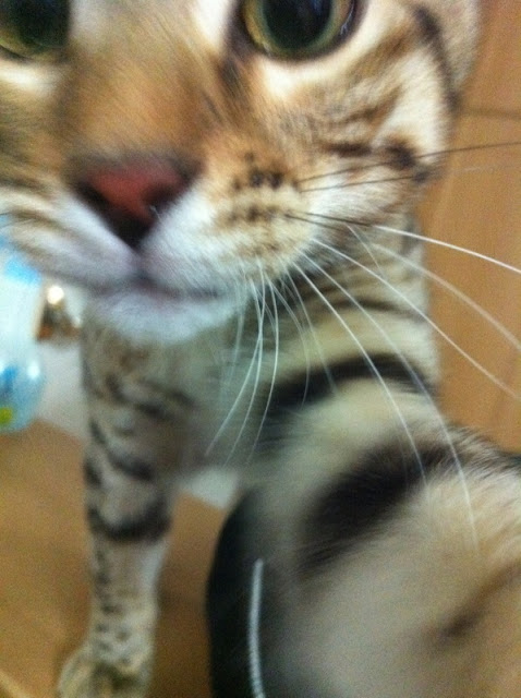 On September 29th, she uploaded the photo above via me2day with caption, "What’s up?!? Did you sleep well? ^^ Ke~ Ewkhahaha… I was taking a picture for Dadoong and he walked up to me and the photo turns out like a self selca! Kekeke~ Our Dadoong’s nose has the shape of a heart~! +.+ Heart~ Pyong Pyong! Ke~ And I did an experiment~ That is using the cat’s paws to touch the phone screen~ Keke~ Possible self-selca function! Kekeke~".