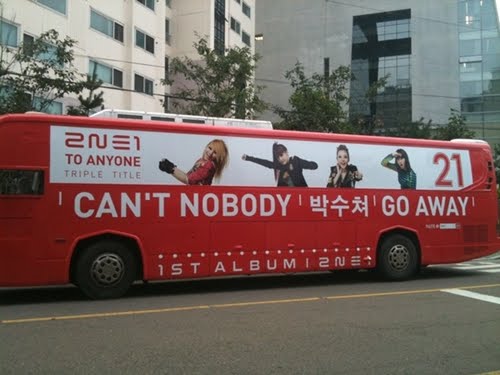 finally!! tomorrow!! 2NE1′s album is released~!! clap! clap! let’s clap! look at this bus~! don’t you want to ride?!! shall we get on together?^.^ please give a great love for our album! if you see this bus on street, take photo and show it to us!!^^