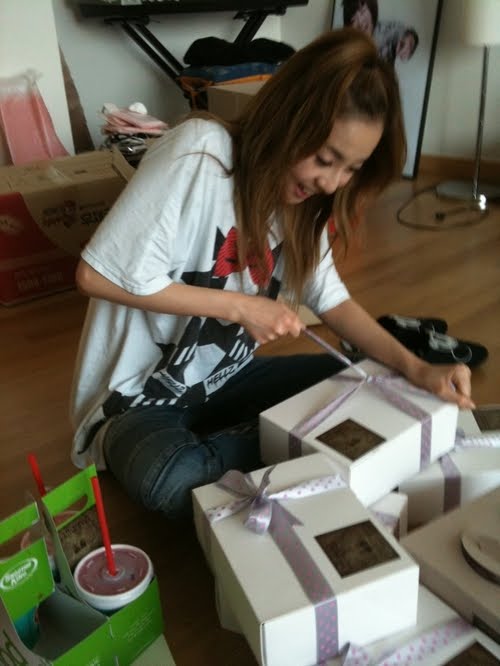 TRANSLATION: We’ve just ended our radio show and now we’re in the new apartment!!!ke Our fans prepared lunchbox for us to eat!!!keke Delicious~! We’ll enjoy our food! While the kids are eating, I took a picture of them.ke We’re enjoying our food ^_^ Thank you!!!