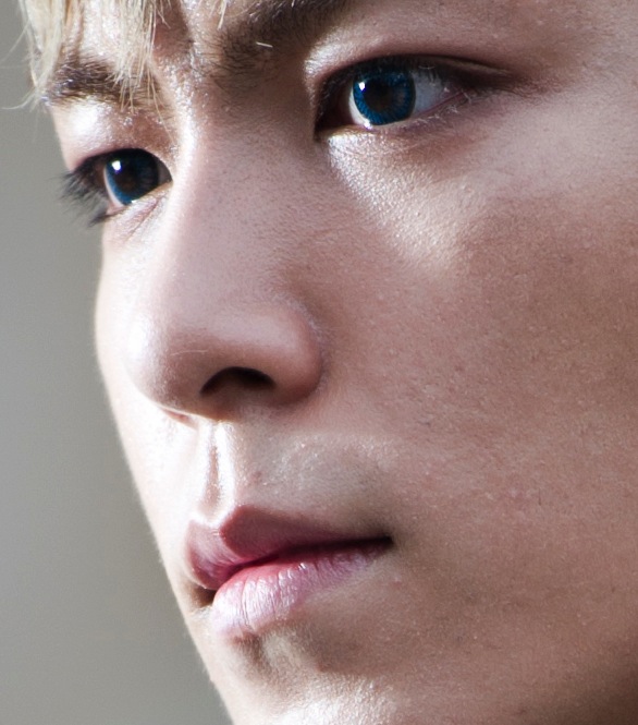 In the photos TOP is looking blankly at somewhere and wearing blue contact lenses.