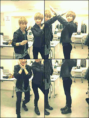 On January 9th, Key shared a playful picture with Taemin. He posted the photo above with a caption "[Key] 오사카 공연장!! 캬캬 태민이랑 같이 소식전해요!"
