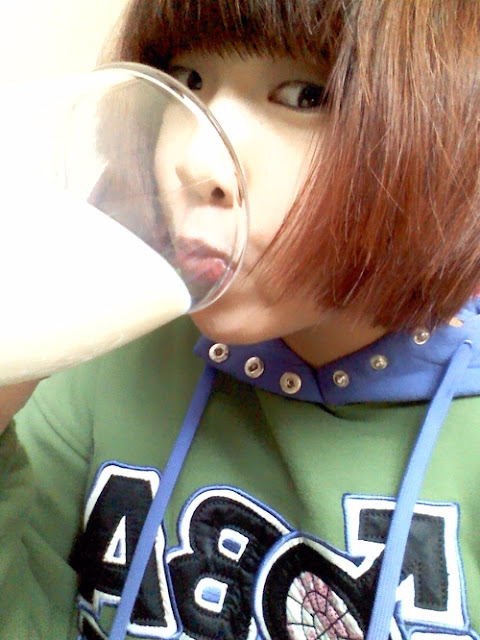 Well,for the second photo,the maknae shows her milk drinking pose,she is cute,right??