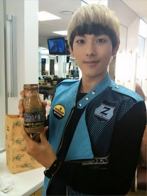 Did everyone have chicken soup today?? ZE:A is at the studio and suddenly Taehun nyamnyam^^