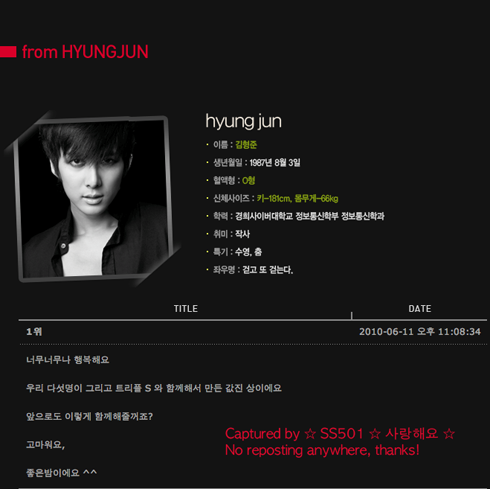 [message] SS501 Kim Hyung Joon message @ DSP site (2010-06-11 11:08:34 PM)