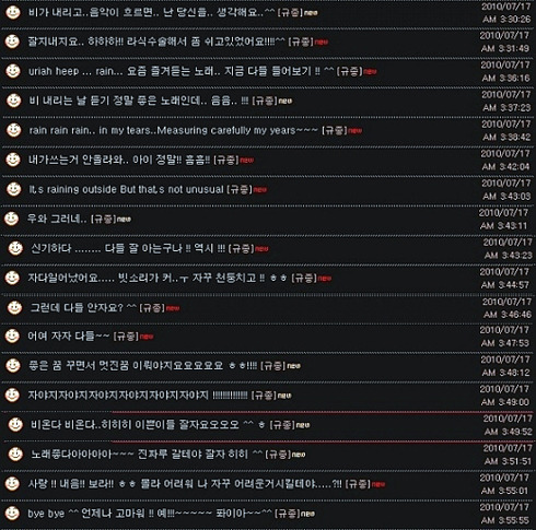 It’s raining it’s raining .. heeheehee Beauties good night yo ohohoh ^^ ha [규종]
