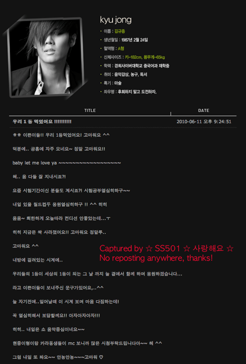 [message] SS501 Kim Kyu Jong message @ DSP site (2010-06-11 9:24:51 PM)