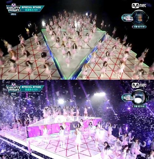 Today, a whopping 101 girls finally make their public appearance for the first time and perform "Pick Me" on stage as a greeting to everyone. The girls dance in a massive formations wearing their cute Christmas outfits.